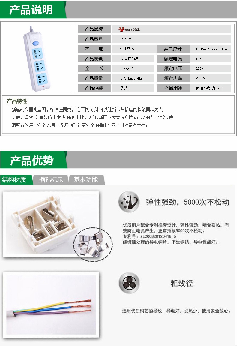 5. 公牛版转换器GN-212 1.8米