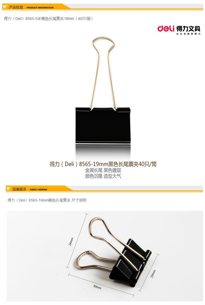 5. 得力8565-5#黑色长尾票夹19MM
