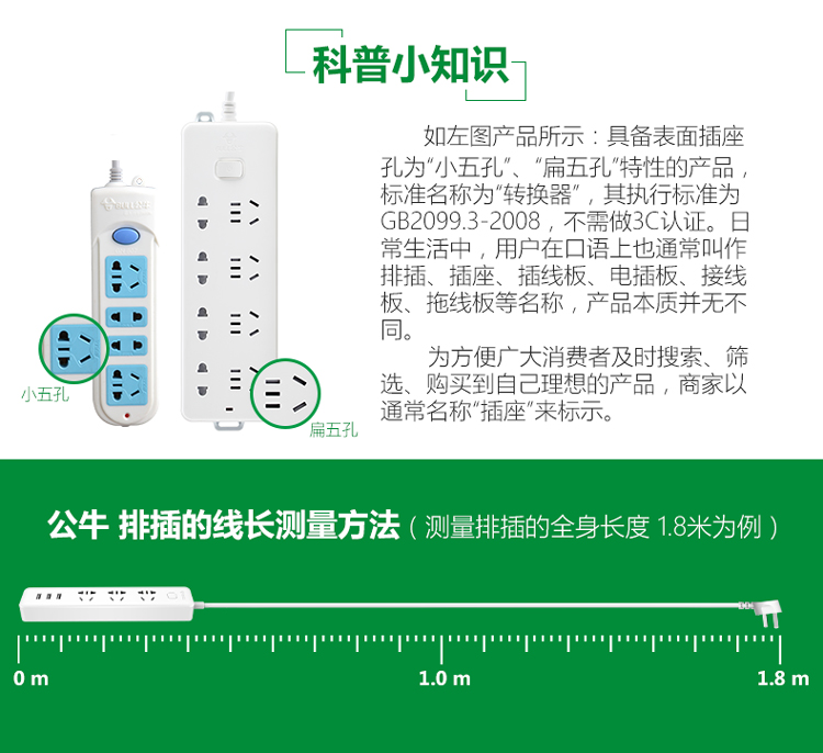 • 公牛USB线排GN-B403U 1.8米 3插