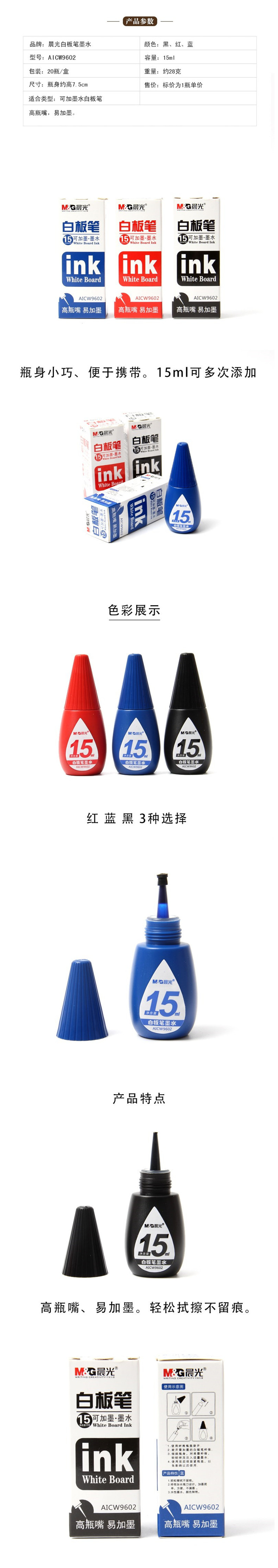 5. 晨光15ML白板笔可加墨墨水AICW9602黑