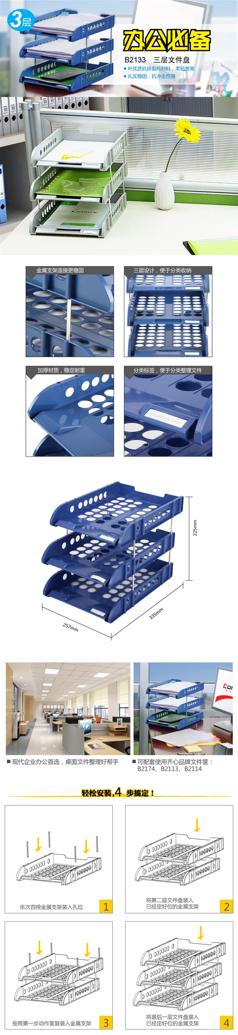 • 富强三层文件盘FQ439铁柱 多用