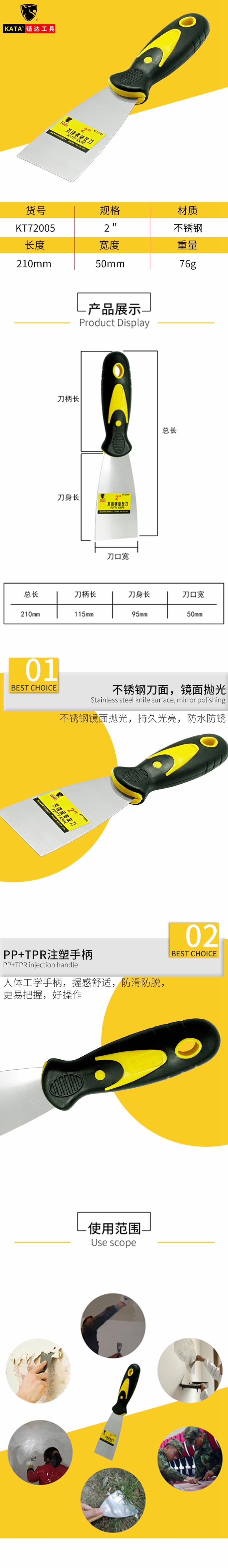 5. 锴达不锈钢油灰刀KT72005 2寸