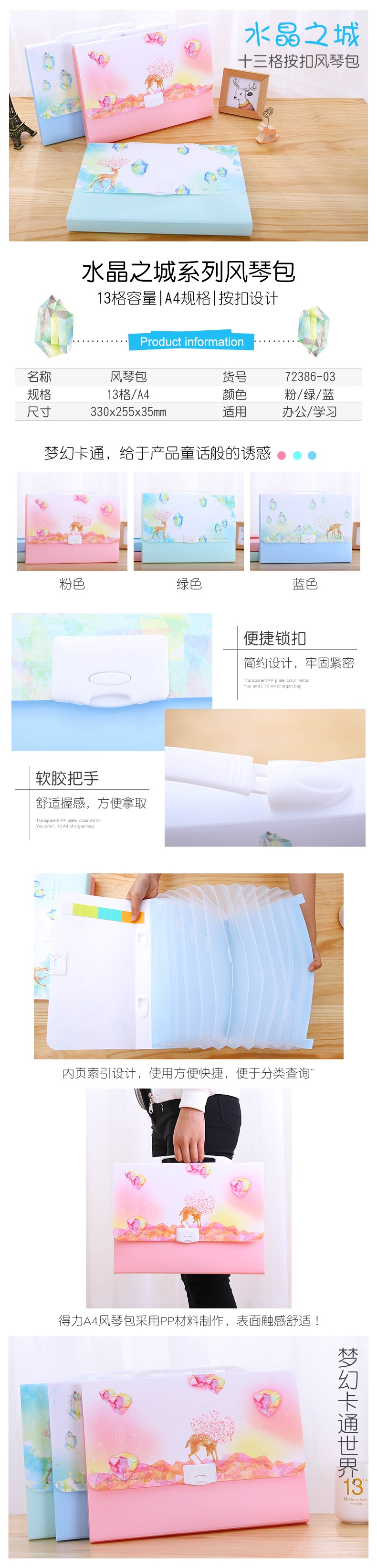 5. 得力A4风琴包72386-03 13格