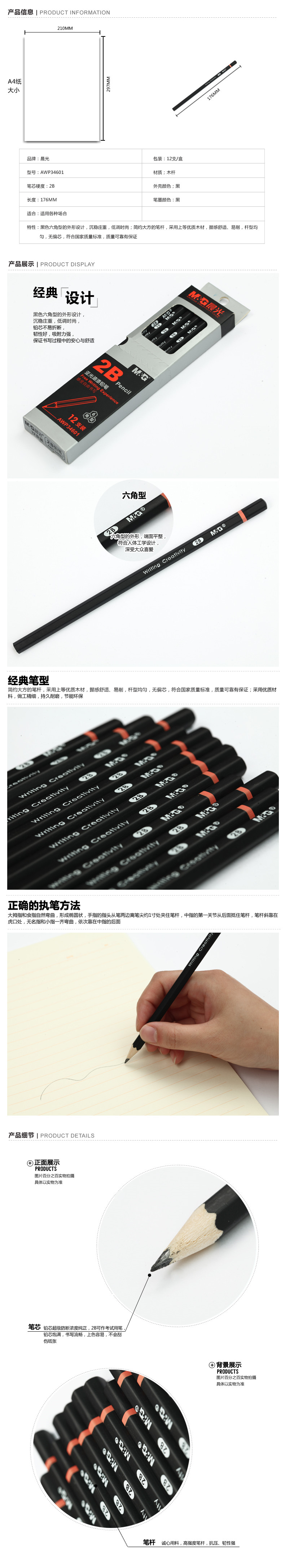 晨光AWP34601 2b亚光油漆铅笔(六角型)