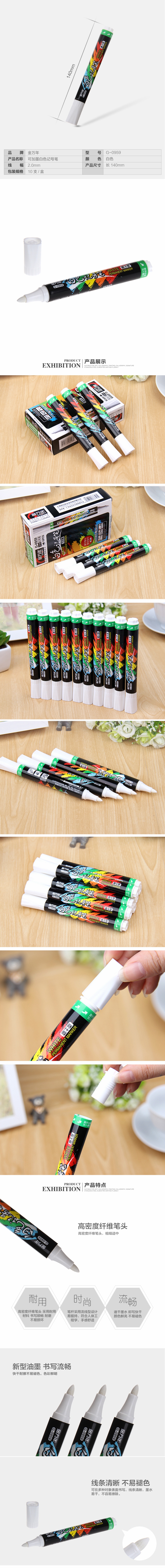 • 商品名称:金万年(Genvana) G-0959 白色记号笔 白色油性速干 可加墨水不掉色 0967小头 1支