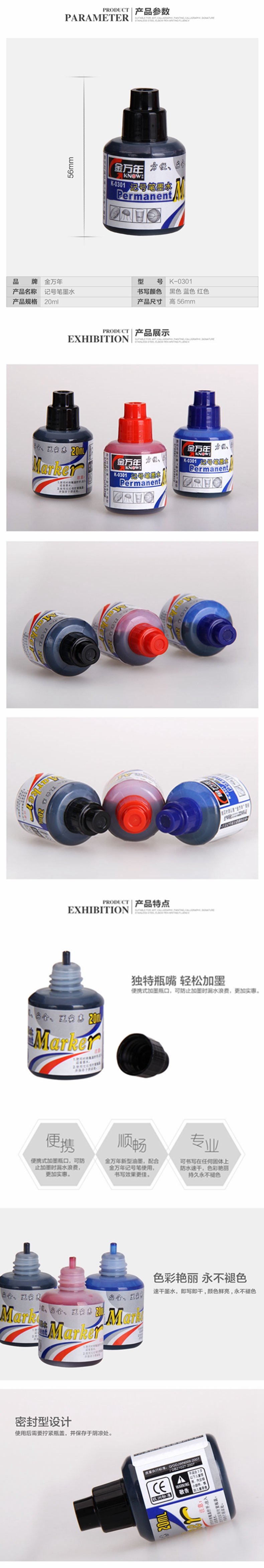 5. 金万年记号笔墨水K-0301 蓝20ML