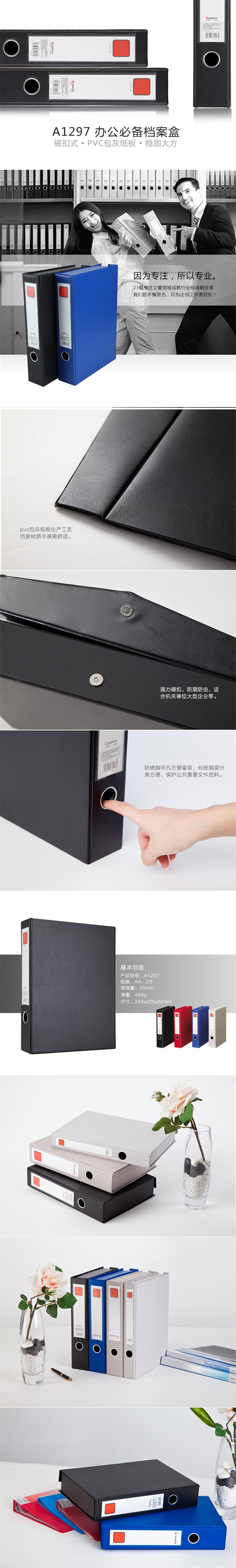 齐心A4档案盒A1297 55mm 黑