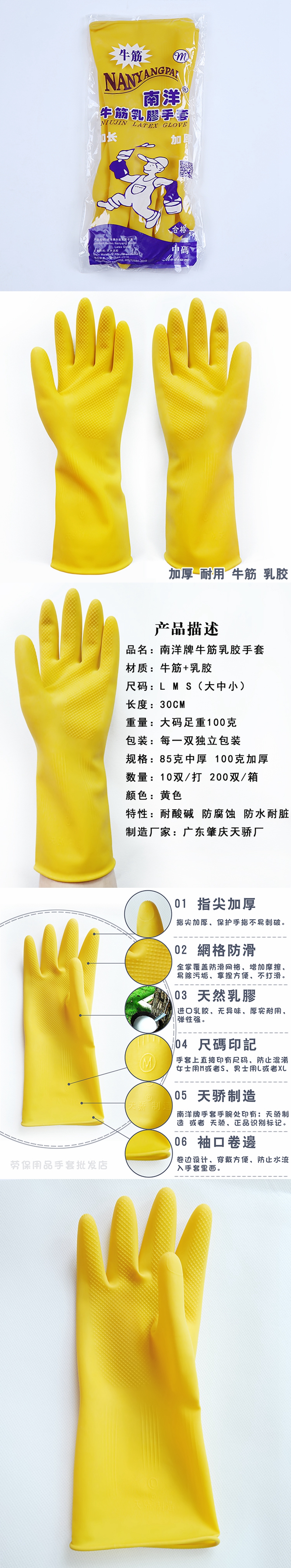 5. 南洋牌牛筋胶手套黄色(大码)