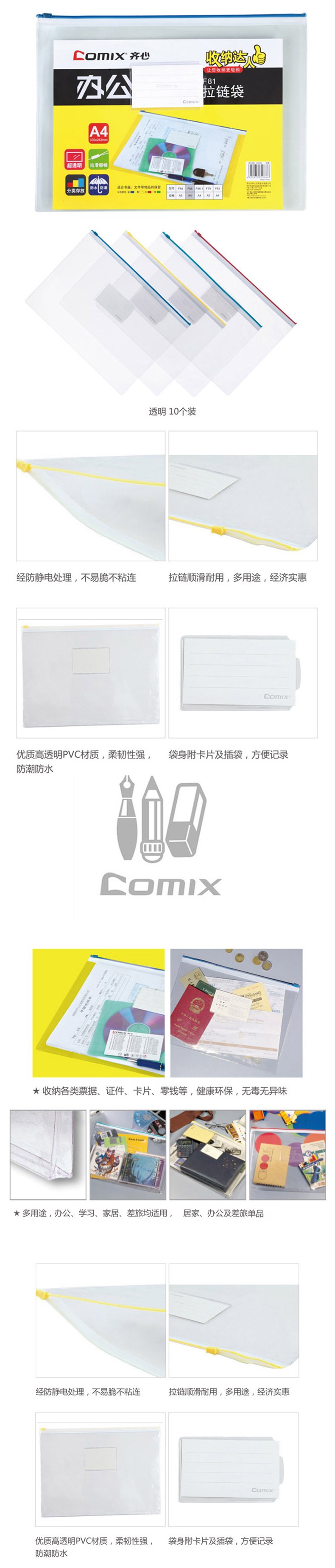 5. 齐心f81a4透明拉链袋
