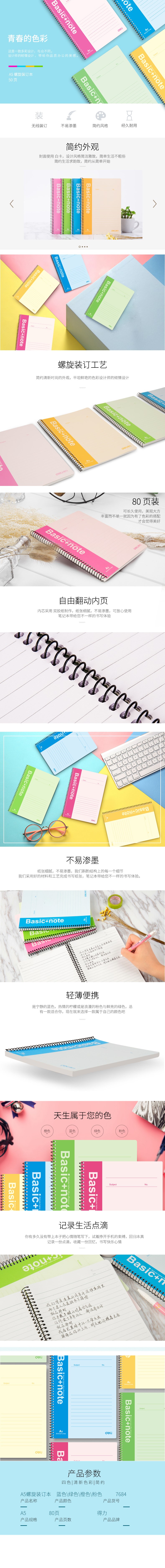 5. 得力A5办公线圈本7684 80页