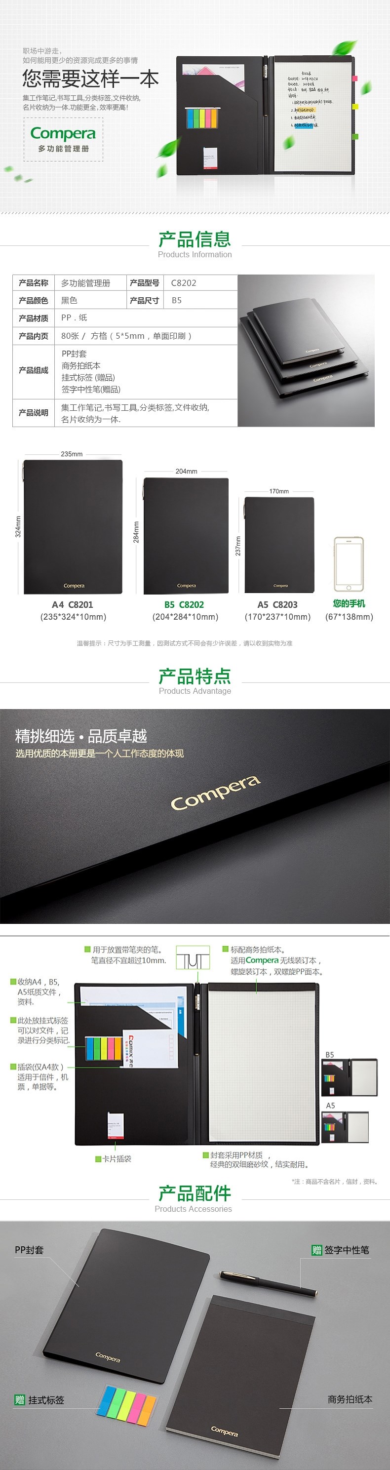 齐心B5多功能管理册C8202 黑