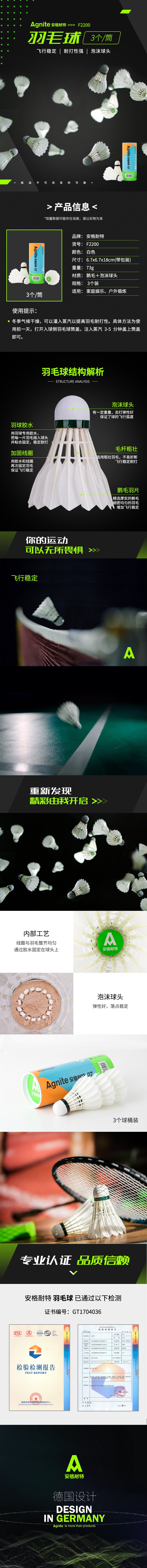 5. 安格耐特羽毛球F2200(3个装)