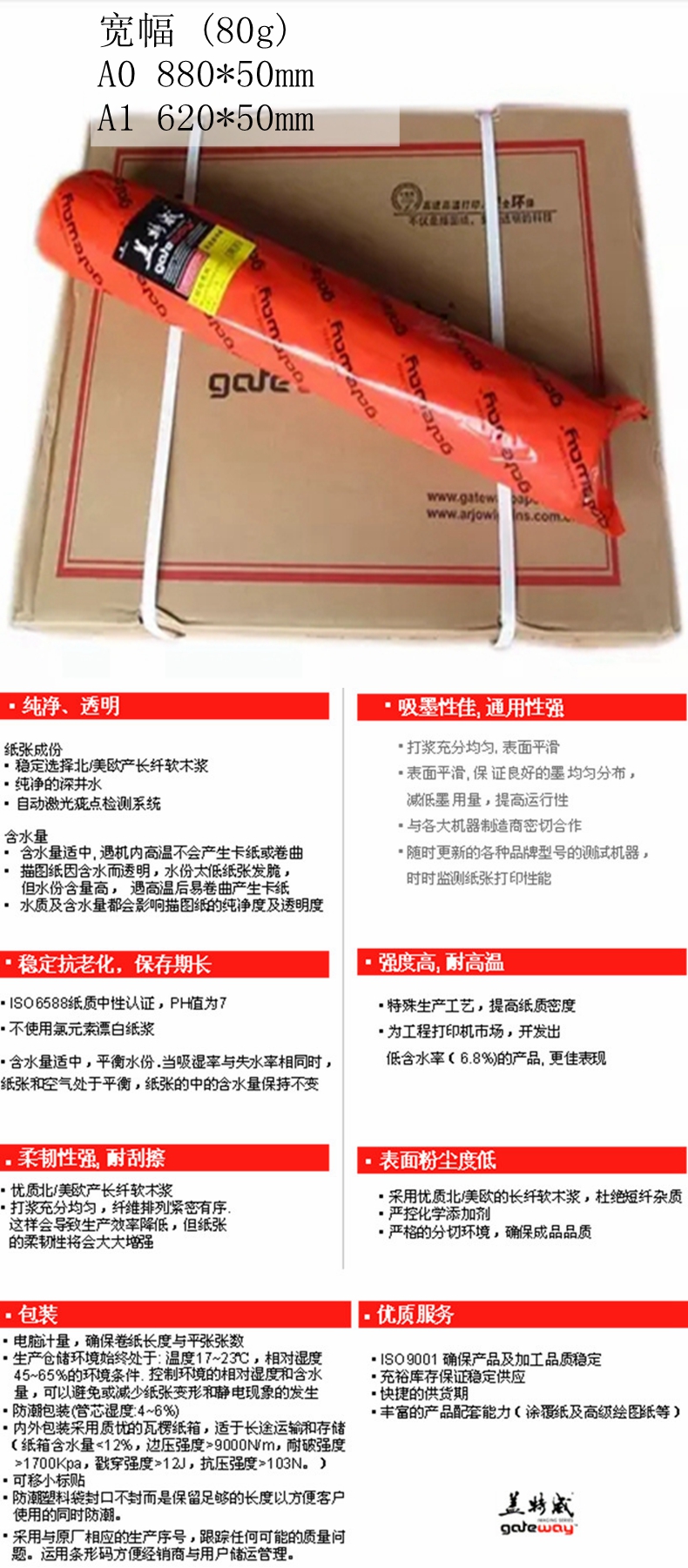 • 盖特威A0工程绘图纸80g 880*50