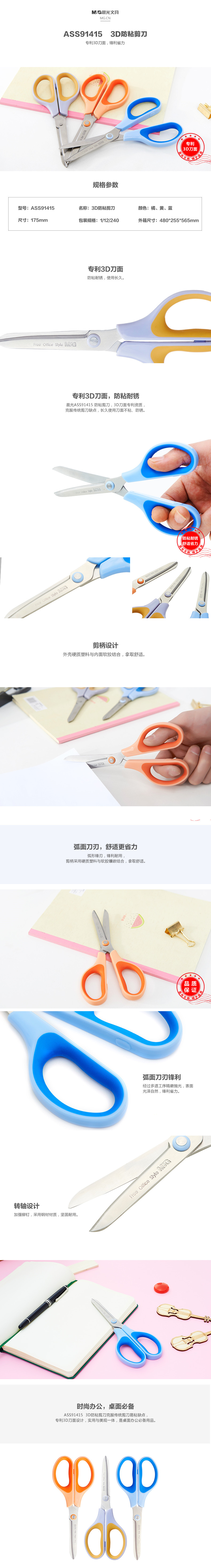 晨光3D防粘剪刀ASS91415 蓝