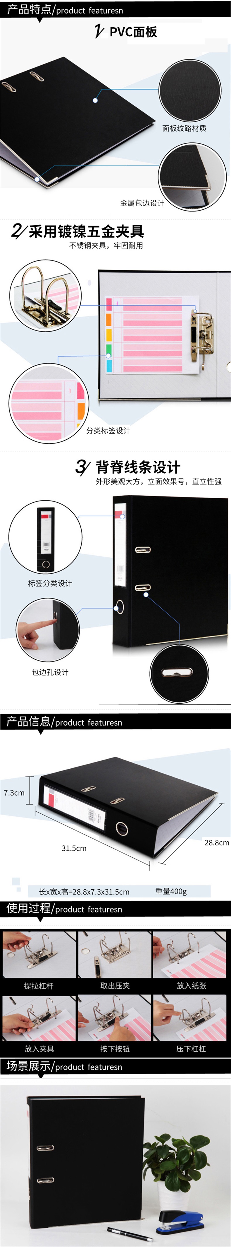 • 齐心A105N快劳夹A4 2孔35mm黑色