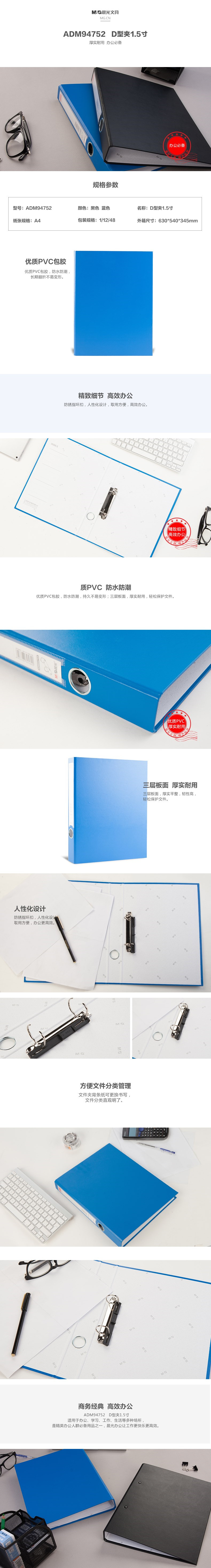5. 晨光2孔D型夹1.5寸 ADM94752 蓝