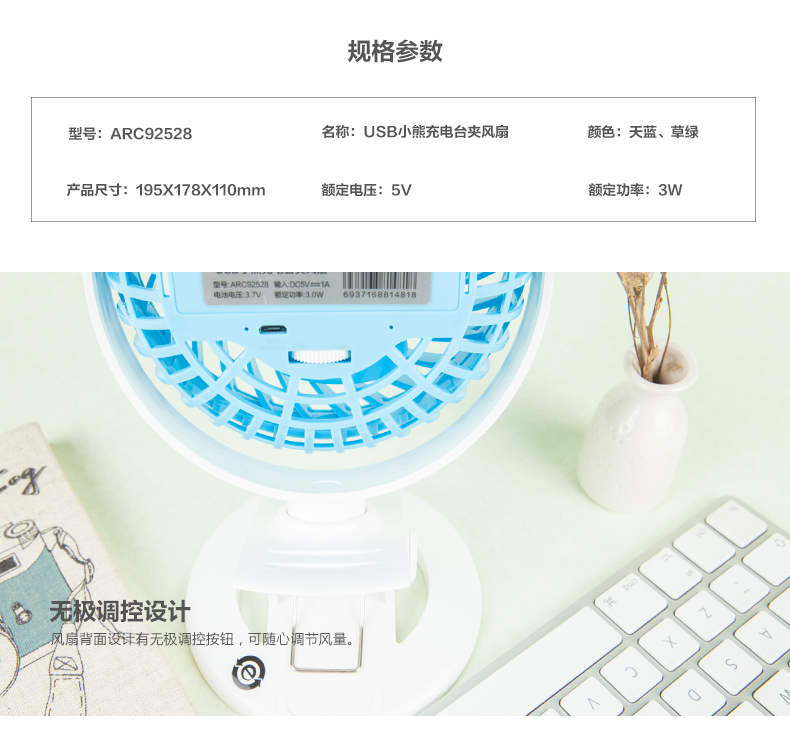 晨光小熊充电台夹风扇 ARC92528(USB)