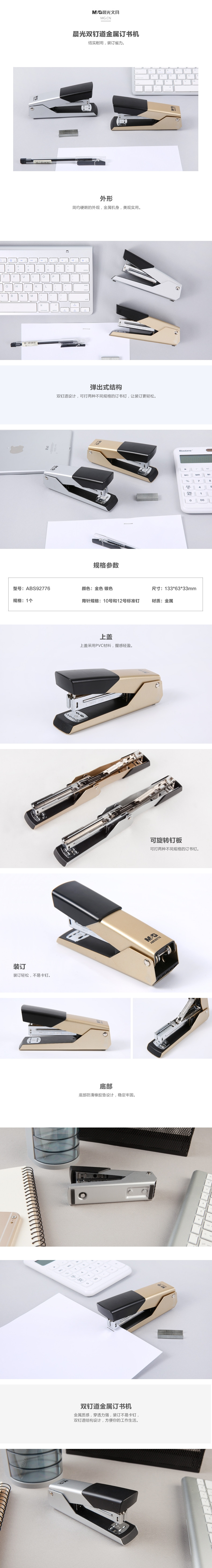 5. 晨光双道金属订书机 ABS92776(金色)
