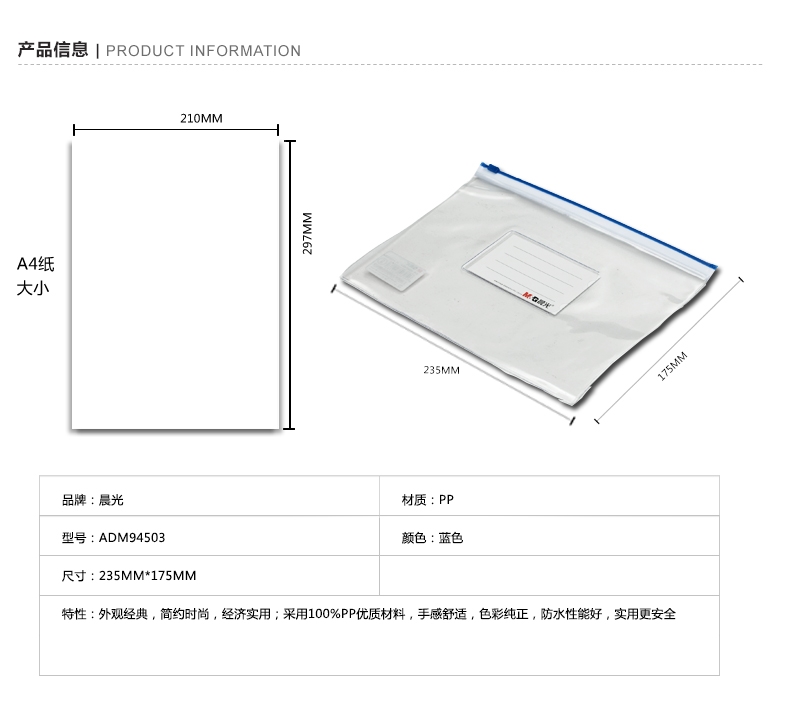 • 晨光A4透明拉链 ADM94504