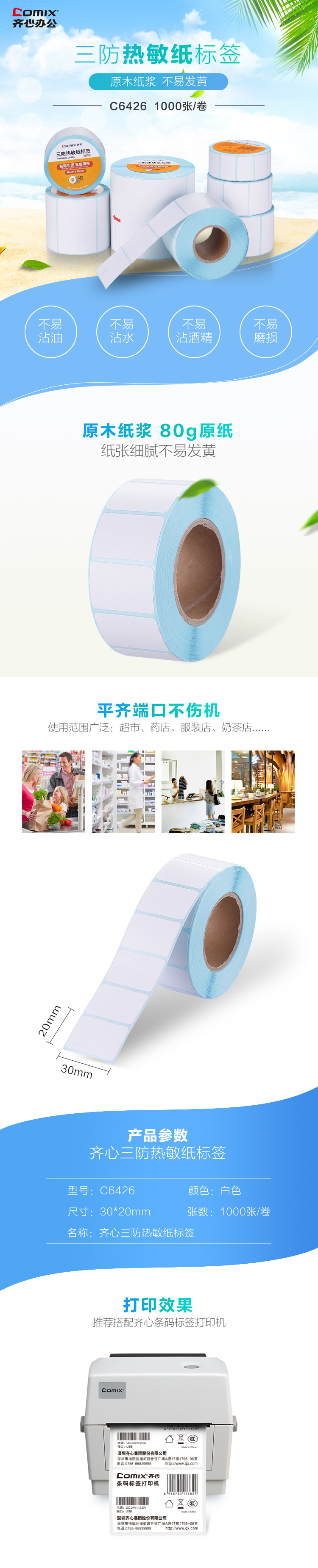 5. 齐心热敏标签纸C6426 30*20mm
