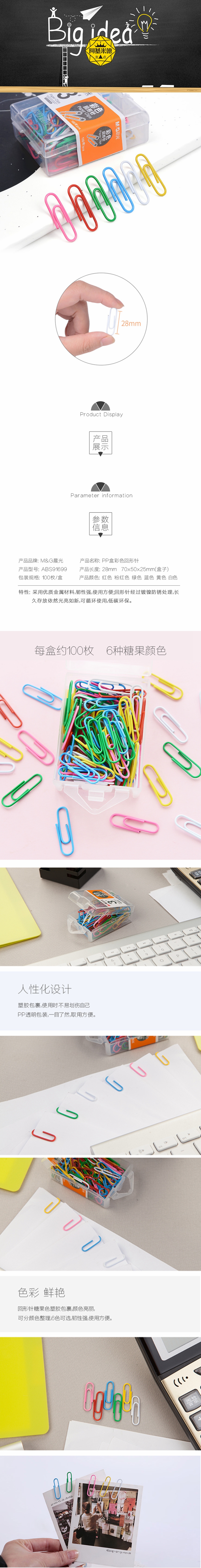 5. 晨光3号彩色回形针ABS91699
