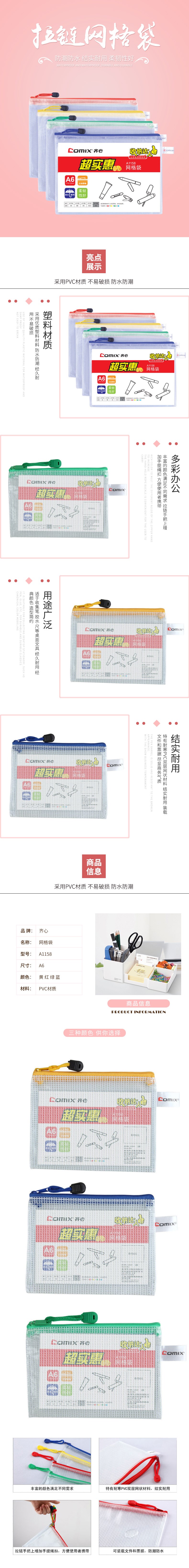 5. 齐心A1158拉链网袋A6