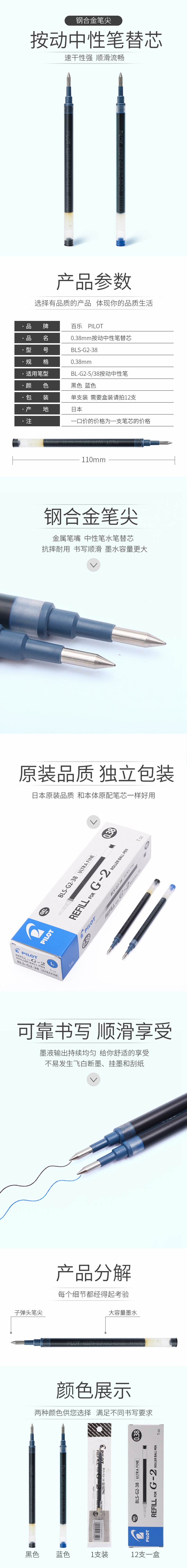 5. 百乐中性笔芯BLS-G2-38 0.38mm黑