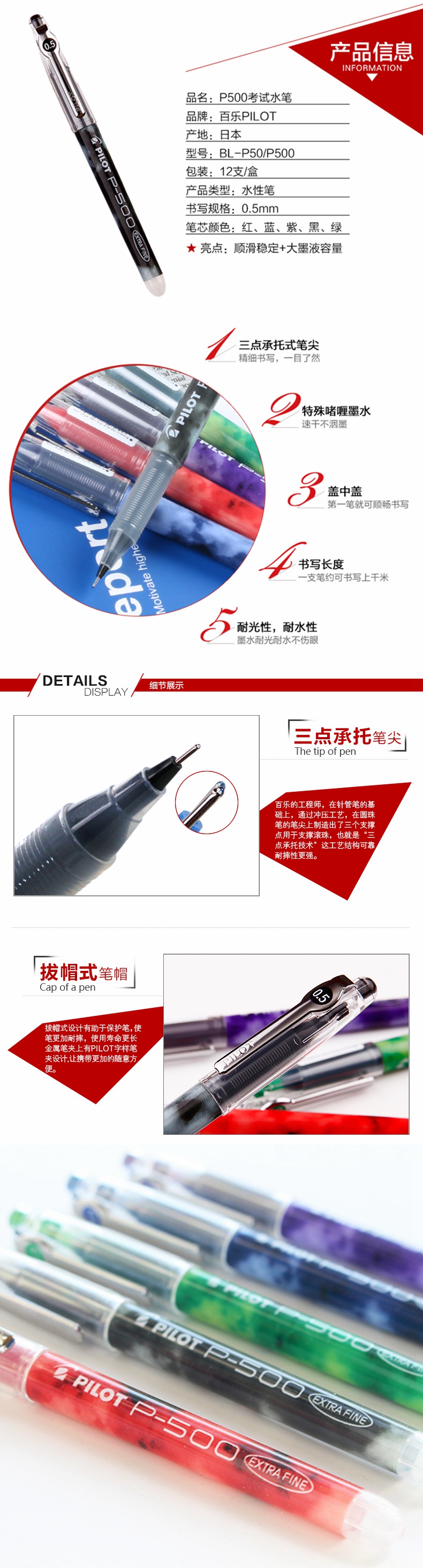 5. 百乐啫喱墨走珠笔BL-P50黑色0.5mm