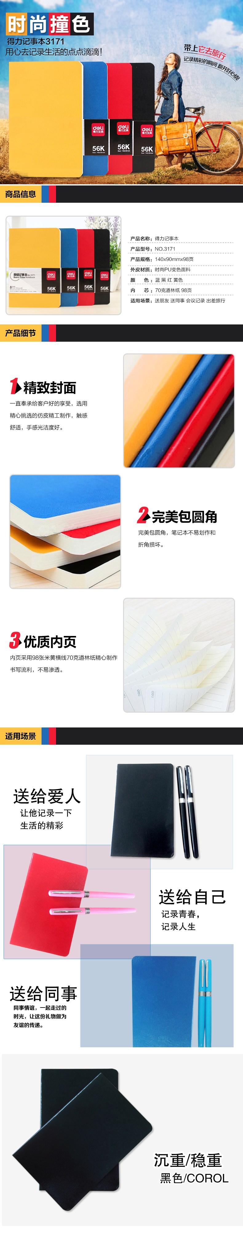得力3171皮面笔记本56K