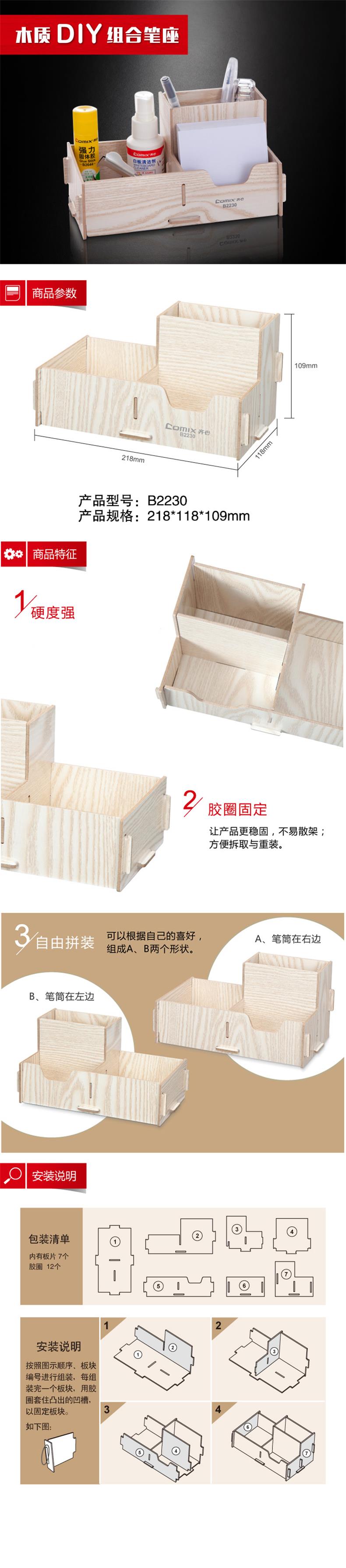 5. 齐心木质组合笔筒B2230