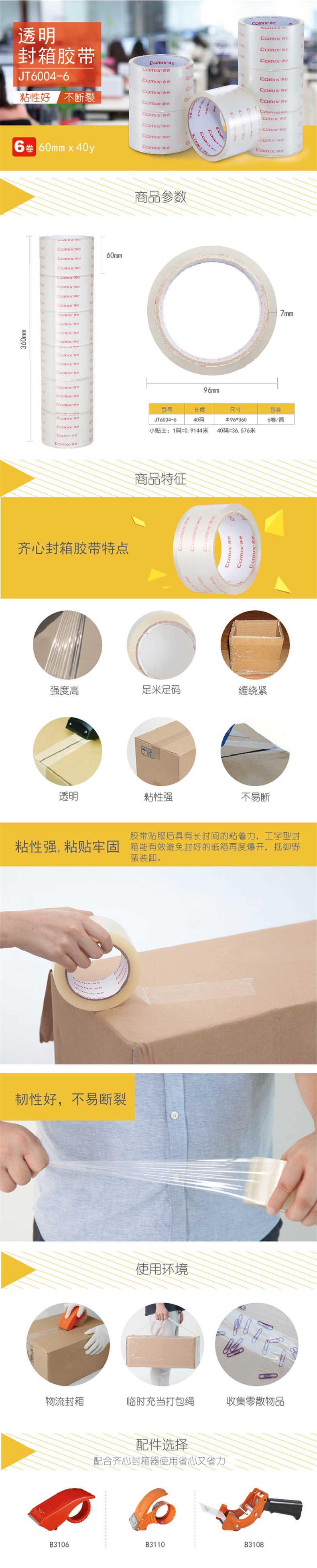 5. 齐心封箱胶JT6004-6 60mm*40y