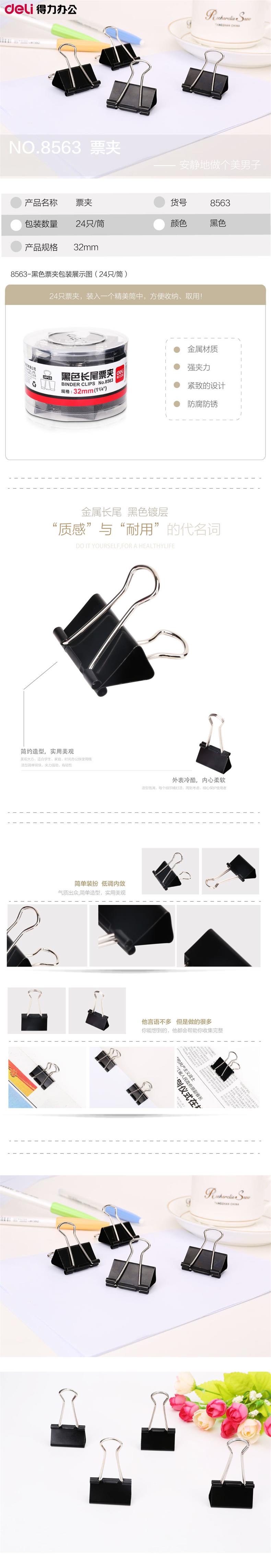 • 得力黑色长尾票夹8563 3#