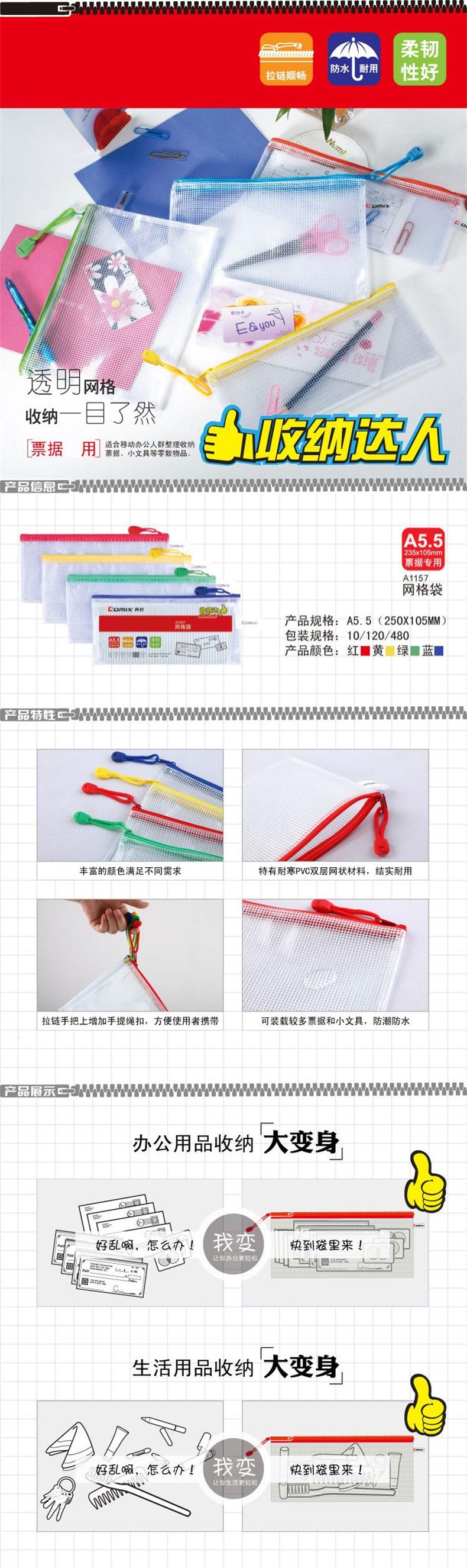 5. 齐心拉链网袋A5.5 A1157(票据袋)