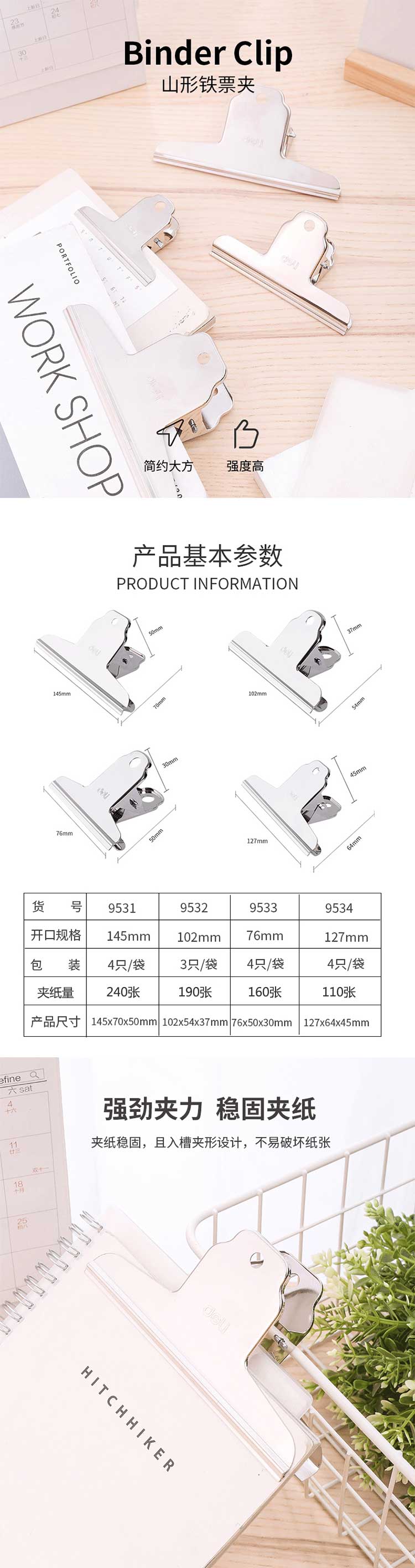 5. 得力山形铁票夹9533 76mm