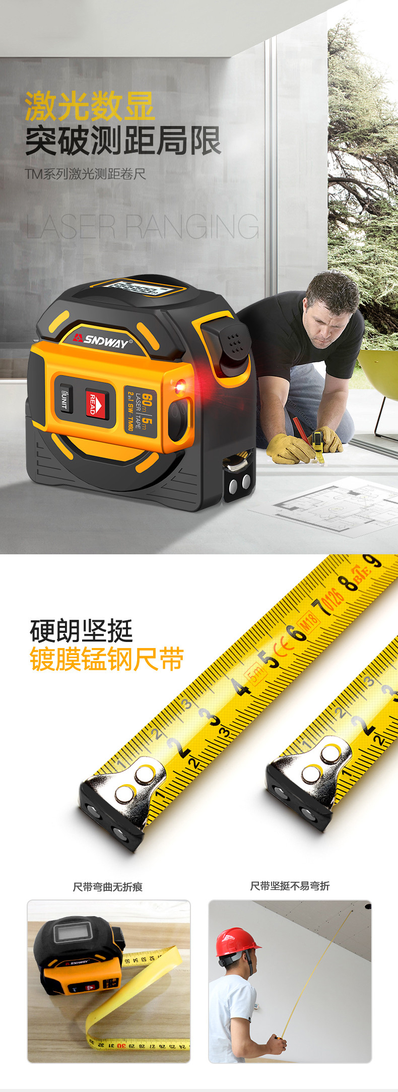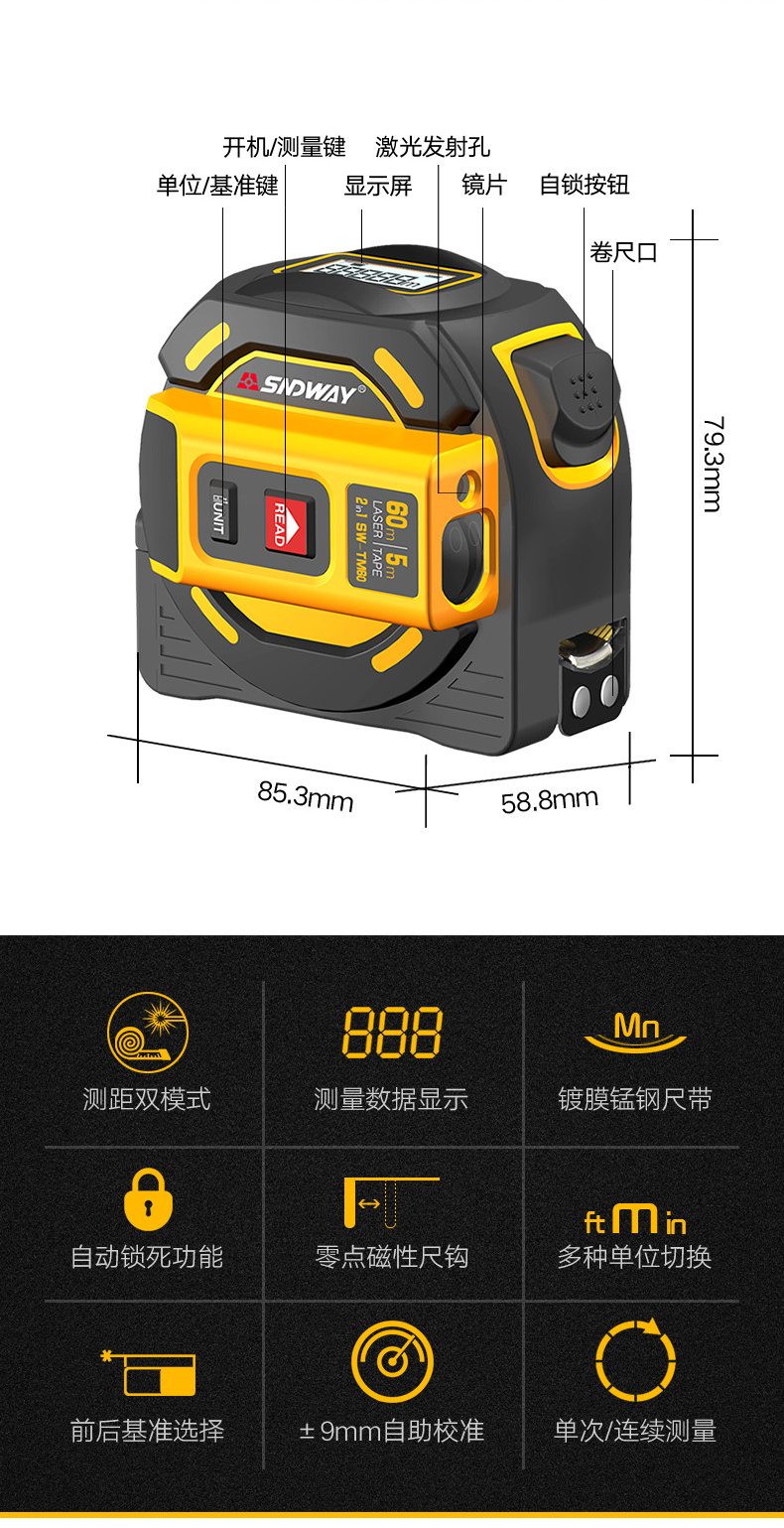 5. 手持激光测距卷尺SW-TM40 40米
