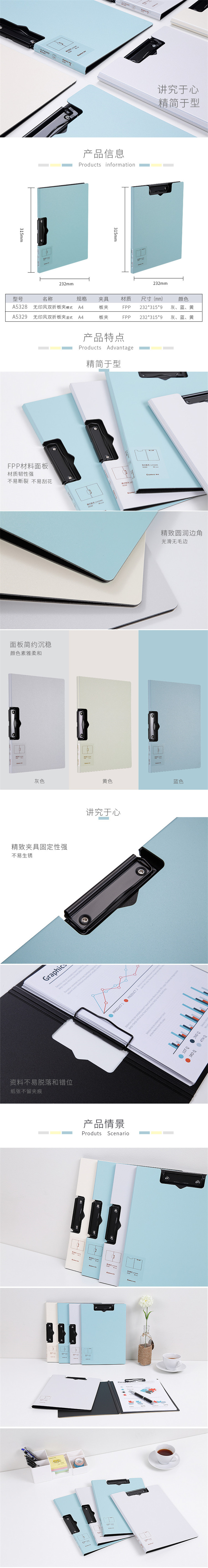 5. 齐心A4竖式板夹A5329 蓝