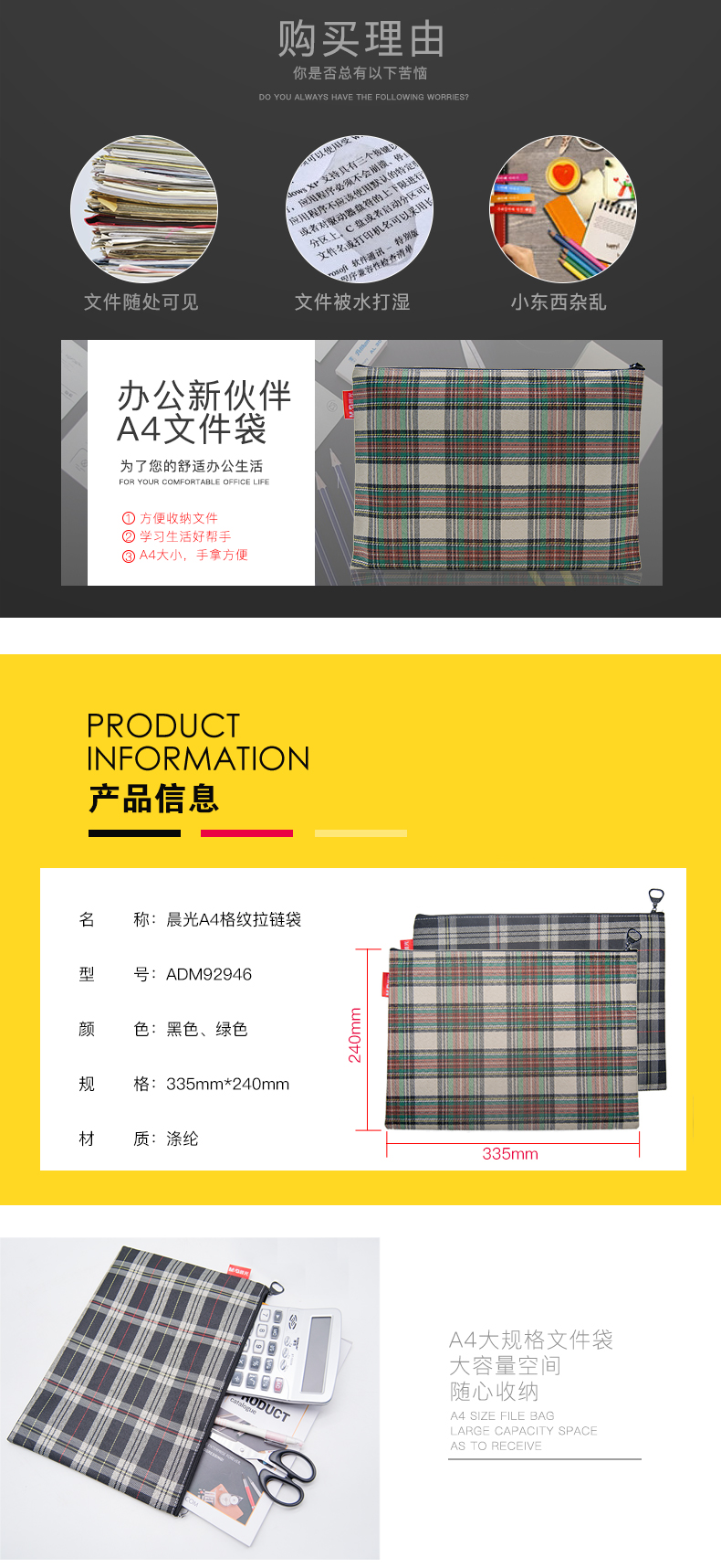 5. 晨光A4格纹拉链袋ADM92946