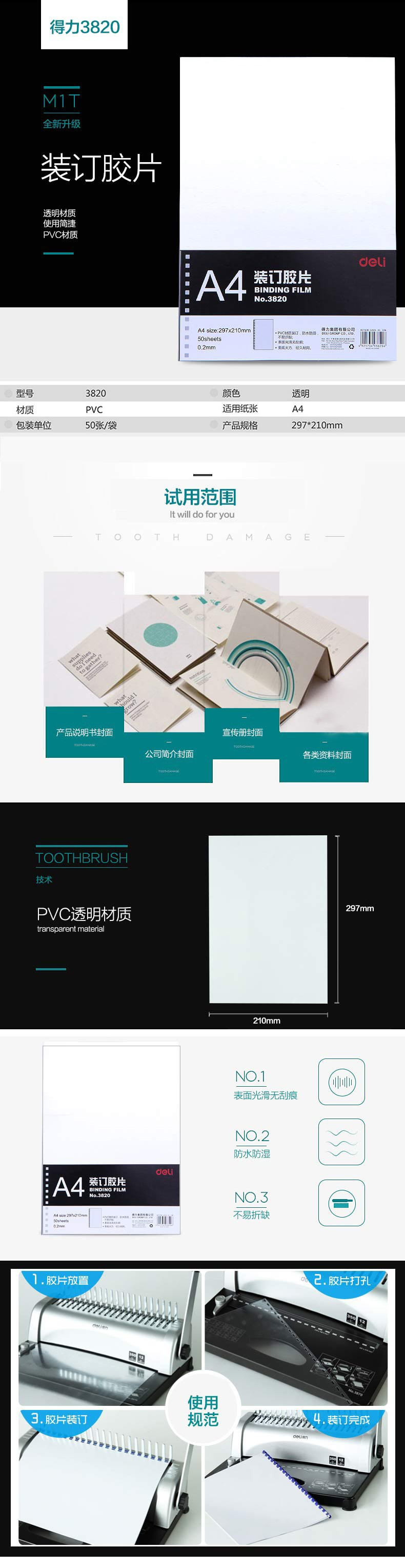 得力装订胶片3820(50张/包)
