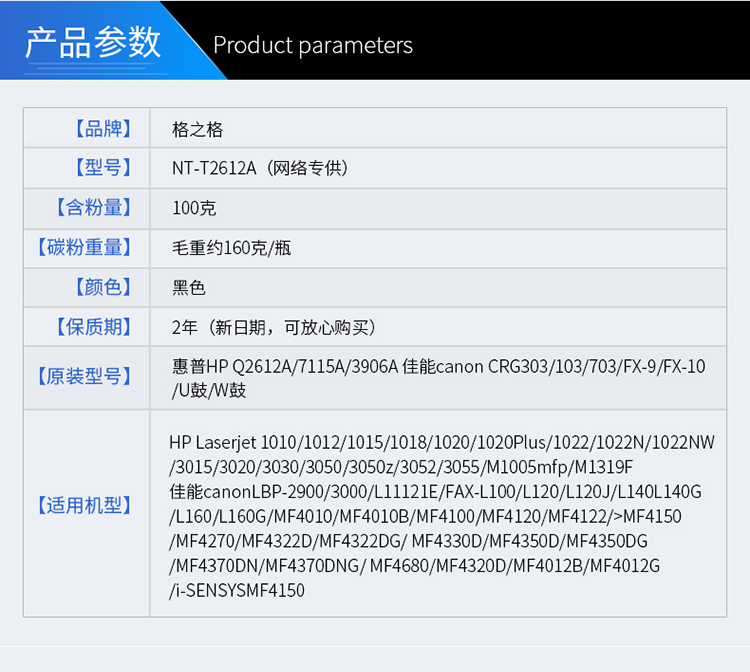• 格之格碳粉NT-T2612B