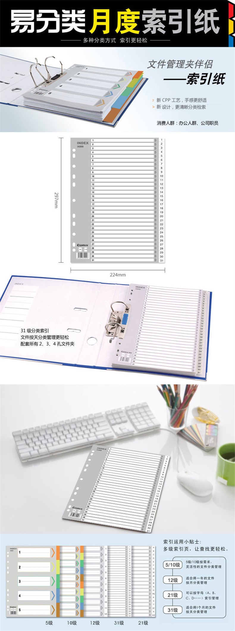 4. 齐心易分类月度索引纸IX899