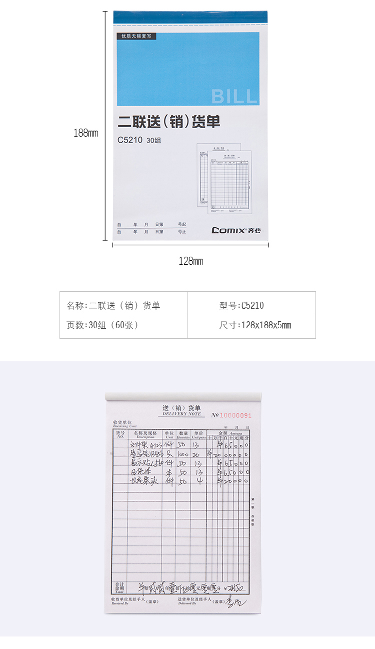 5. 齐心二联送(销)货单C5210 32K竖
