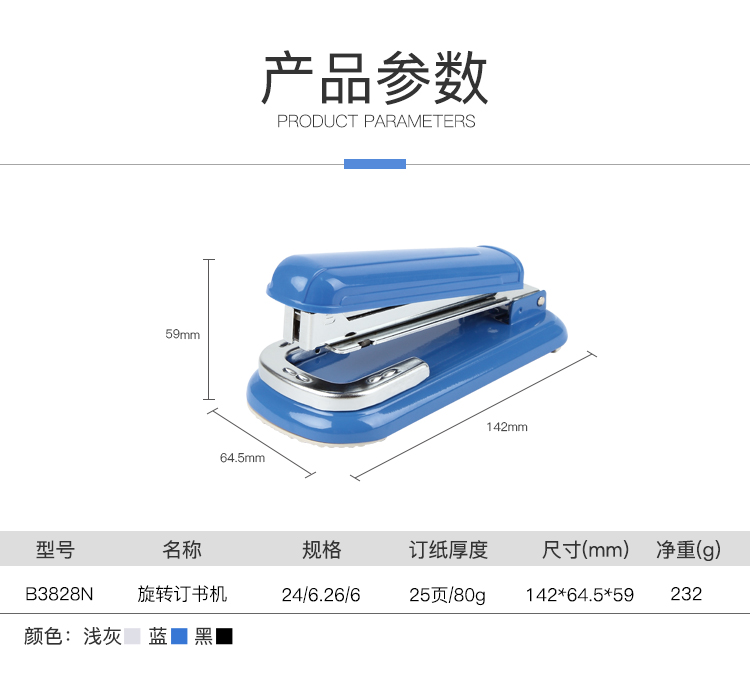 齐心旋转订书机B3828N 蓝