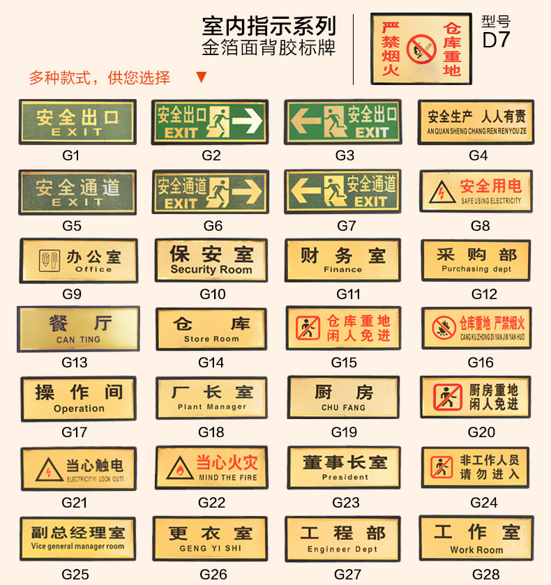 • 指示牌(推拉)有机金色