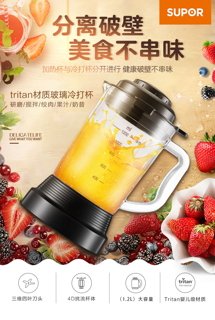 5. 苏泊尔T12多功能破壁冷打杯1200ml