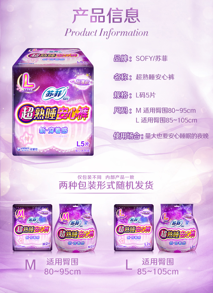 5. 苏菲贴身超薄L码夜用安心裤5片