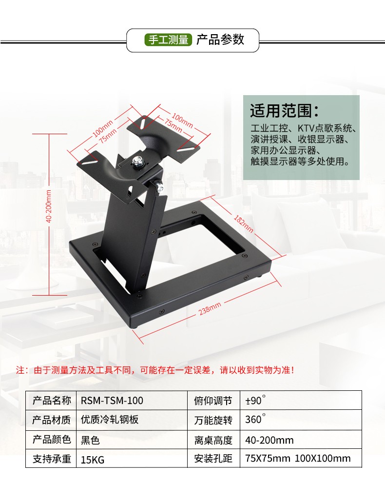 • 瑞思美显示器底座支架RSM-T100 黑