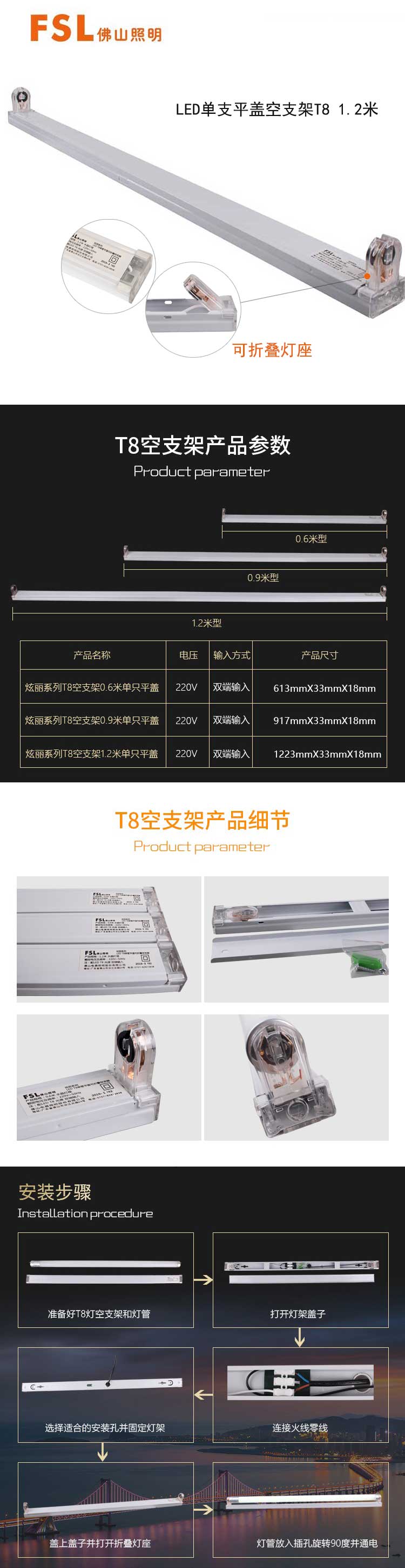 5. 佛山照明LED单支平盖空支架T8 1.2米