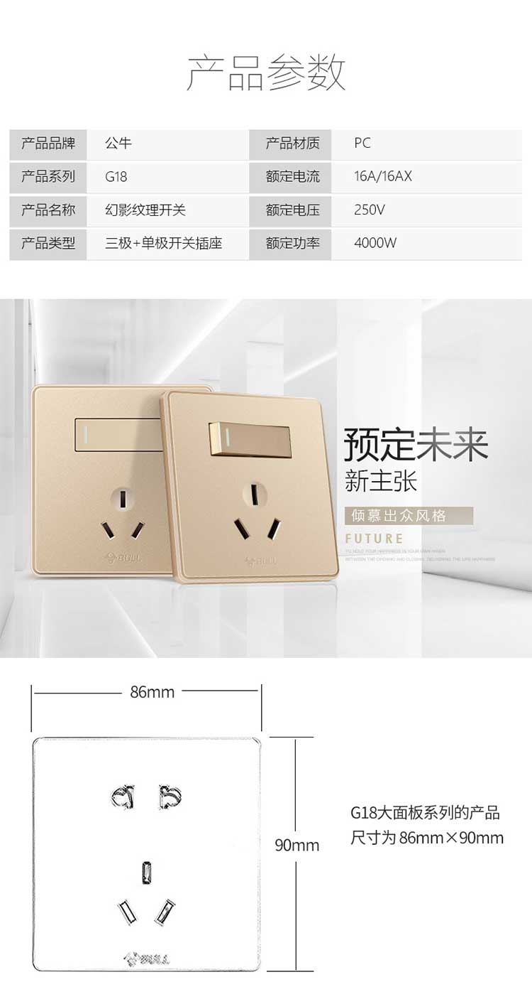 • 公牛三极+单极开关插座16A G18E204