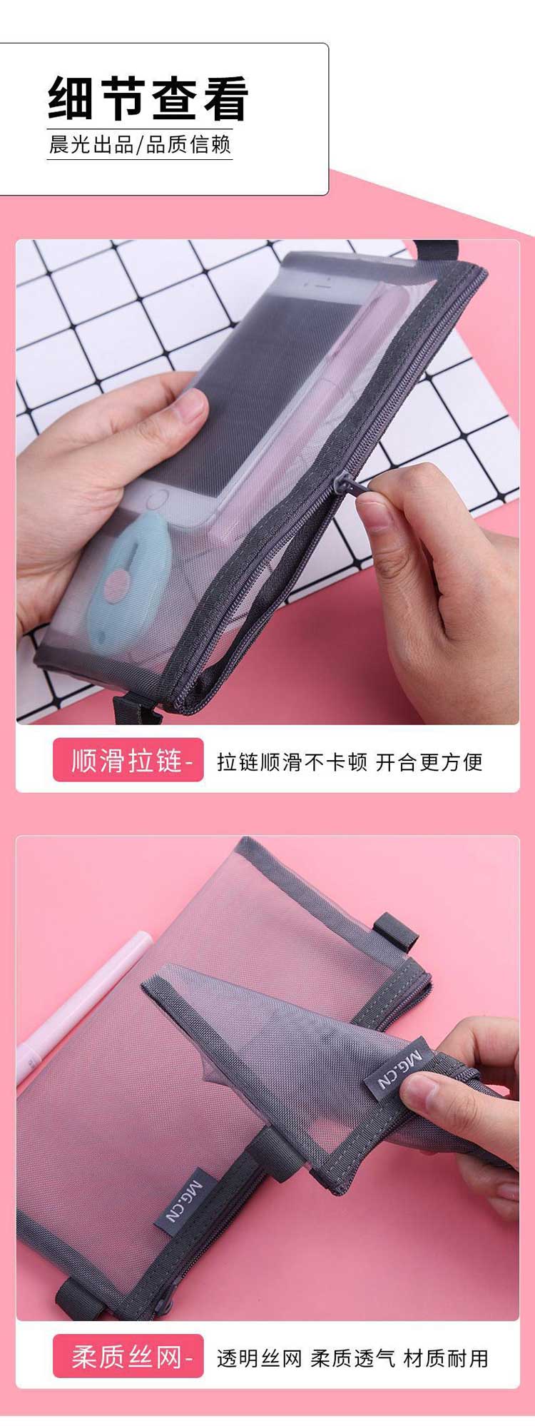 5. 晨光透明网纱笔袋APB95494(黑色)