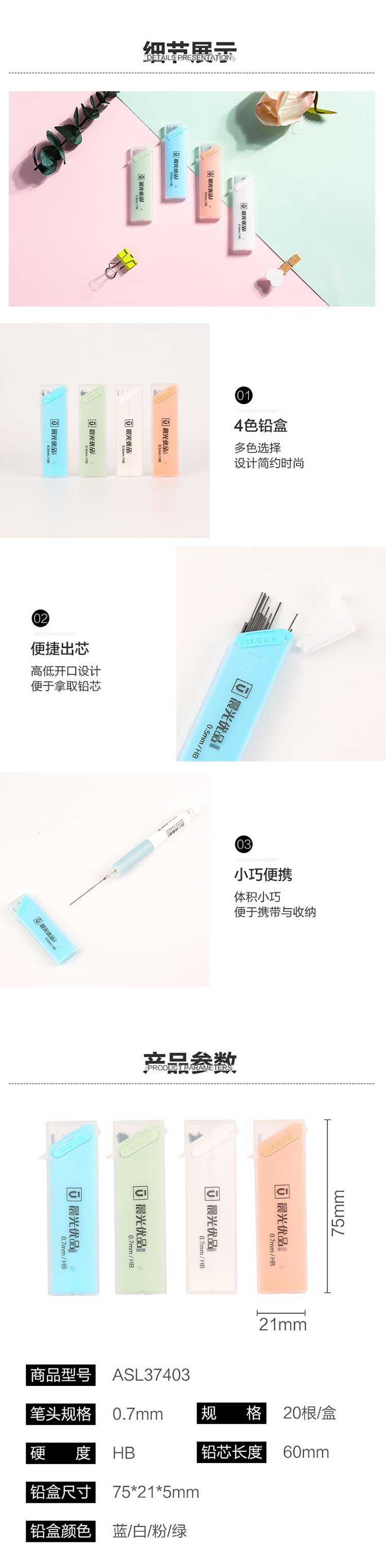 晨光优品铅芯ASL37403 0.7HB